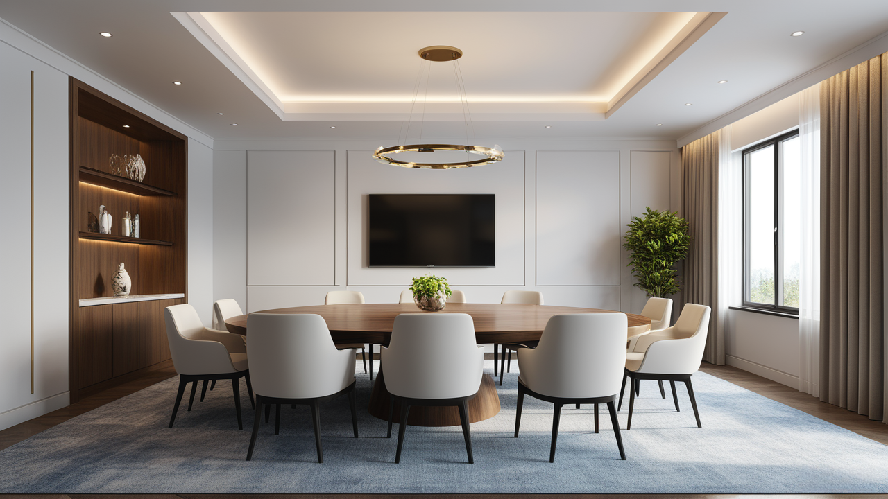 本案設計在處理上,特設計了可向客戶展示企業榮譽品的展示墻,用料實際,無須雕琢張揚,直線條的造型讓整個空間顯得穩重大方,淺色系材料的運用延續了靈動而清澈的氣韻,大方莊重卻內含現代時尚。而且色調淡雅的地毯、沙發、背景,還突出了接待廳親切、和睦、寬松的氛圍,使穩靜而坦誠的晤談氣氛盎然一室。